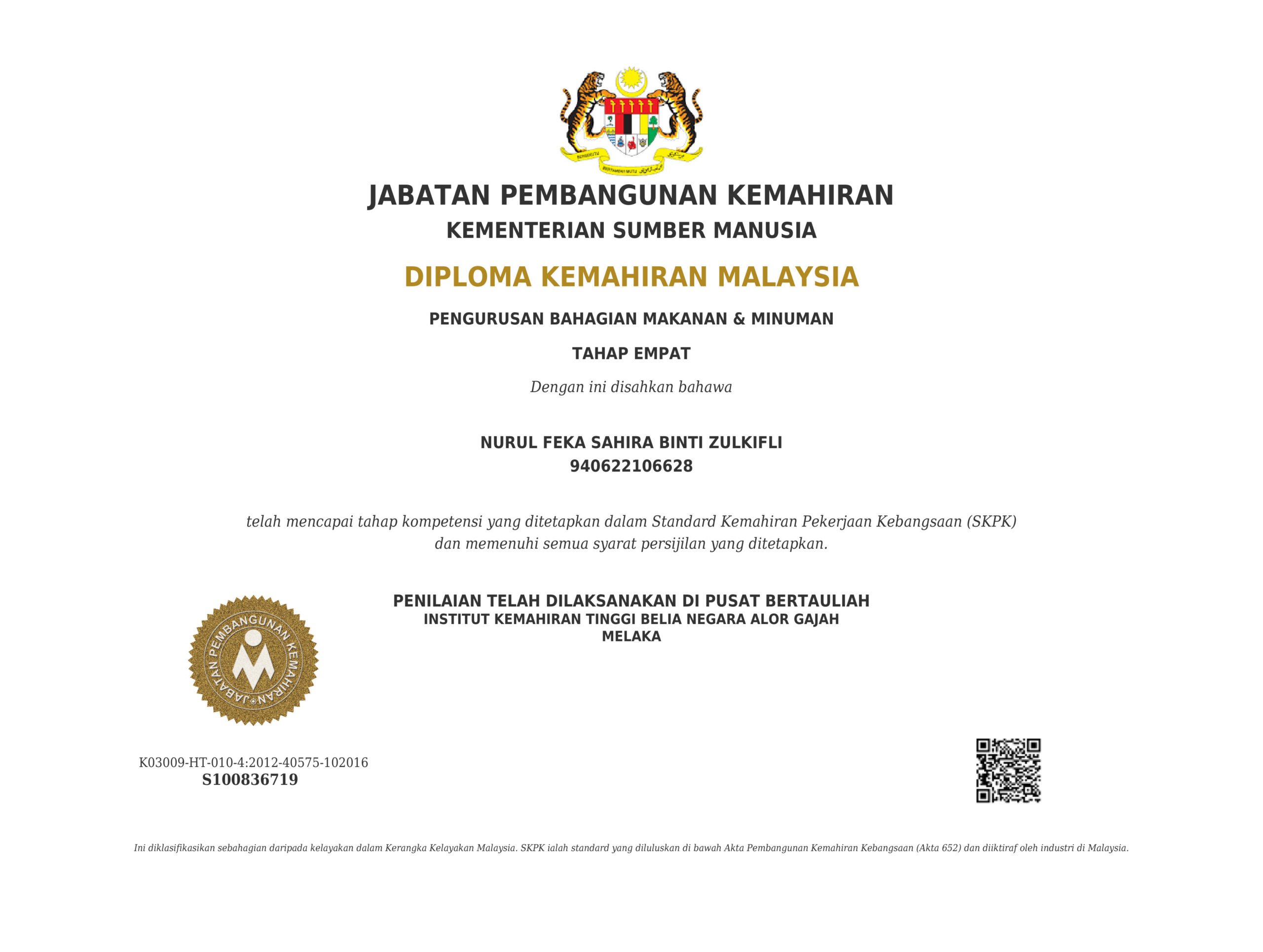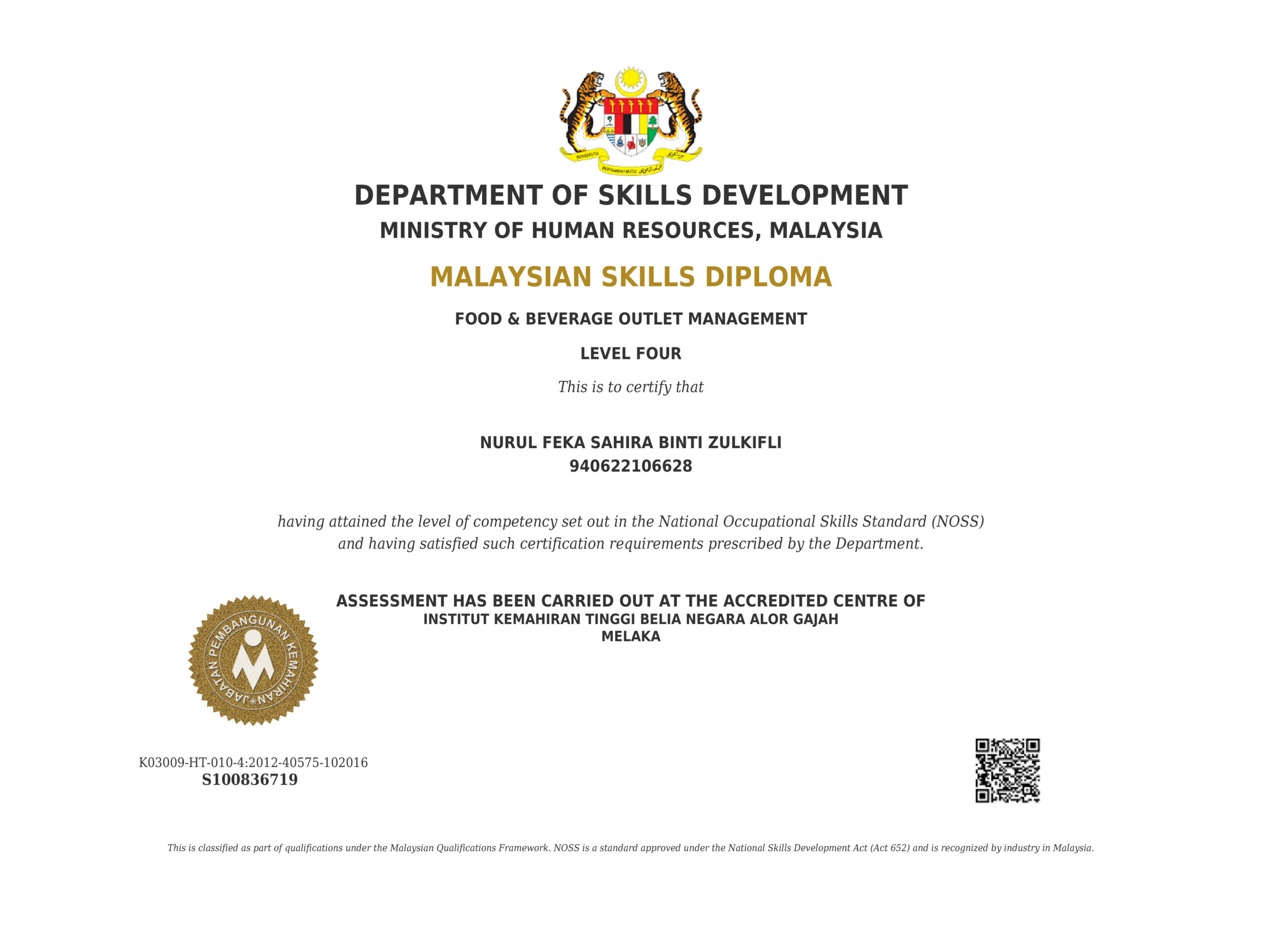 - PENGIKTIRAFAN: Jabatan Pembangunan Kemahiran, Kementerian Sumber Manusia